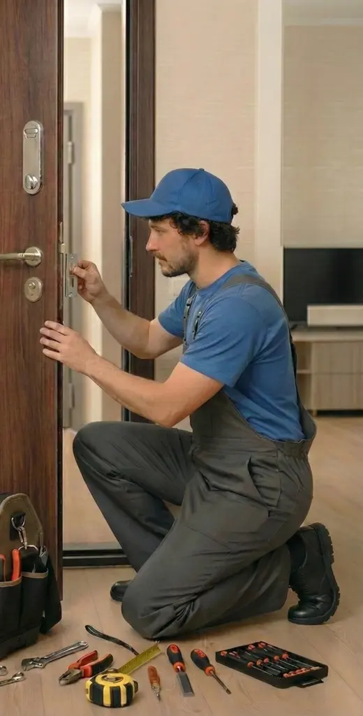Мастер определит причину: перекос полотна, просевшие петли или смещённый язычок замка. Отрегулирует механизмы, и дверь снова будет закрываться легко и плотно.
